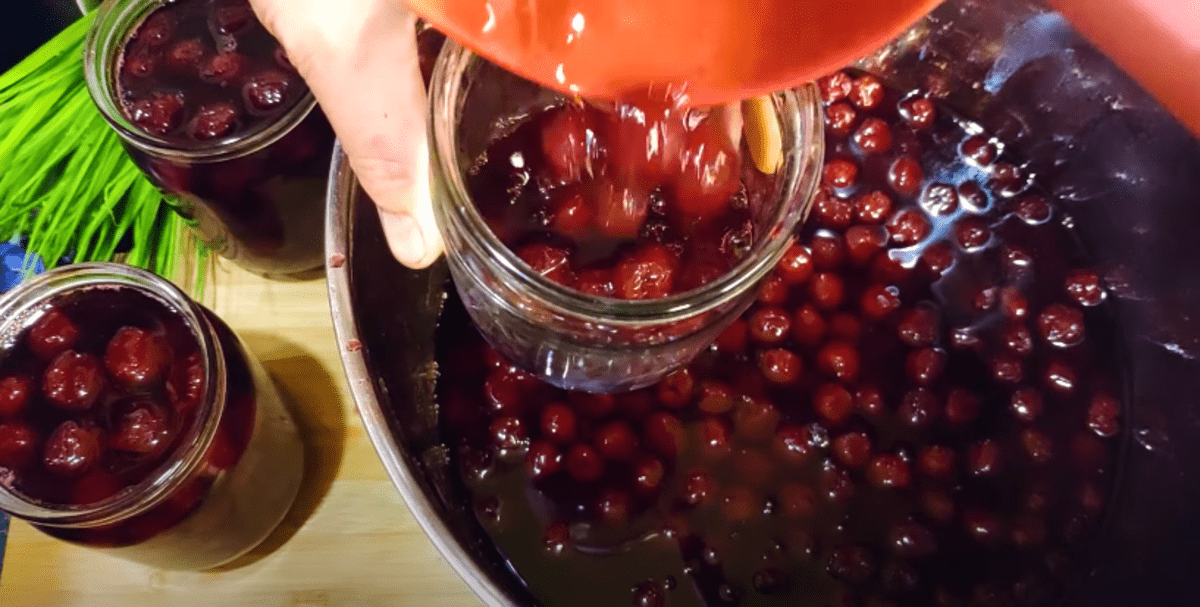 До кипіння вишню не доводимо. Залишаємо остигати на 3-4 години, можна на ніч. Під час остигання вишню кілька разів перемішуємо, занурюючи в сироп.