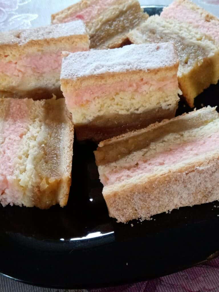 Першу частину тіста, розкачуємо, викладаємо яблучну начинку, потім викладаємо, другу частину тіста, потім сирну начинку, акуратно розрівнюємо, виладуємо третю частину тіста, випікаємо при температурі 180 градусів 40-50 хвилин.