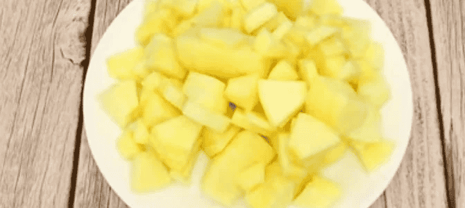 З яблук зчищаємо шкірку та нарізаємо на маленькі шматочки.