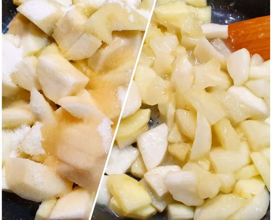 Тушити на слабкому вогні 5-7 хвилин до м’якості фруктів. ⚠️Якщо використовуєте суміш груш та яблук, то тушити їх краще окремо, т.я. у них різна густина.