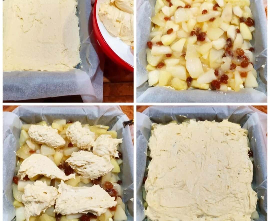 Нескладний у приготуванні дуже ніжний пиріг. Можна робити його з яблуками, можна із суміші яблук та груш, а можна тільки з груш (це для тих, хто любить посолодше).