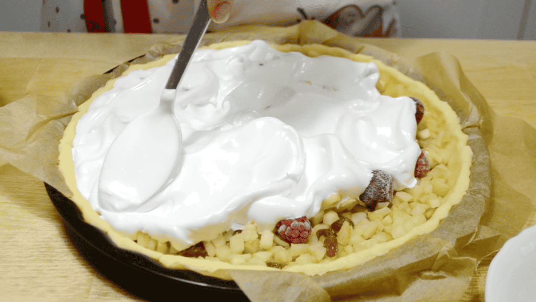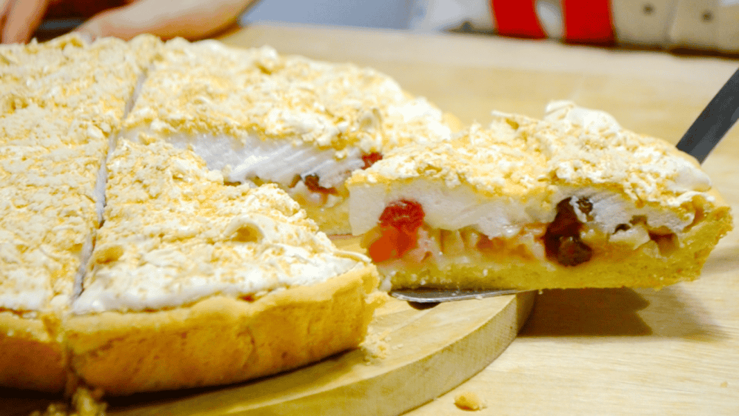 Сьогодні рецепт фруктового пирога з повітряною меренгою чи безе. Він дуже ніжно тане у роті і подобається всім без винятку!