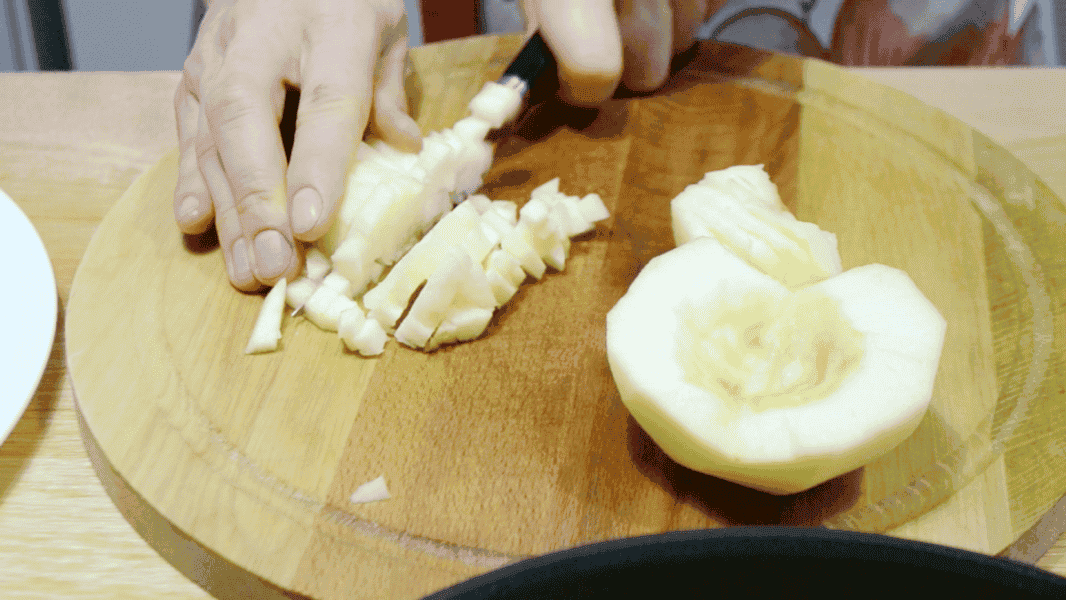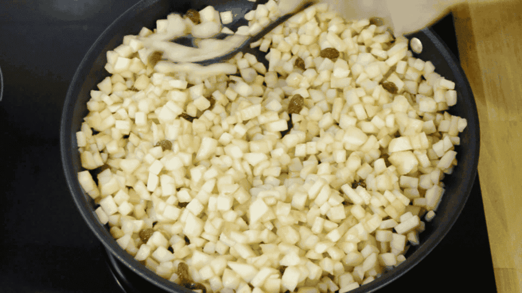 Яблучна начинка: Яблука очищаю від шкірки та нарізаю кубиками.