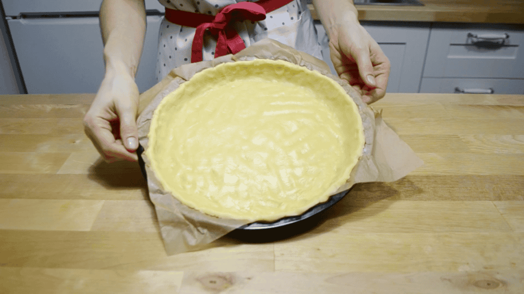 Поступово розподіляю тісто та формую бортики. Поки що прибираю фому в холодильник і готую начинку.