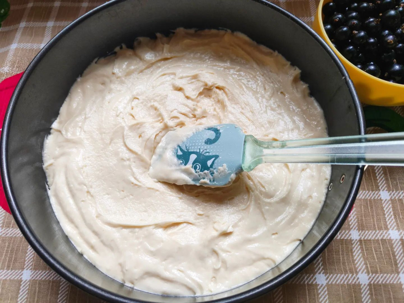 Викладаємо тісто у форму (для зручності я застелила дно пергаментом), розрівнюємо лопаткою.
