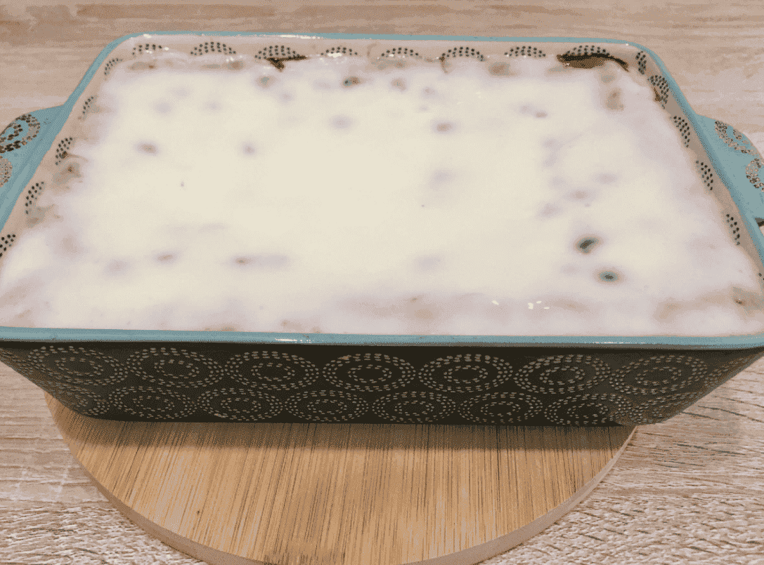 Відправляємо випікатися у розігріту духовку. Знадобиться приблизно півгодини за температури 180°, щоб тісто зарум’янилося.