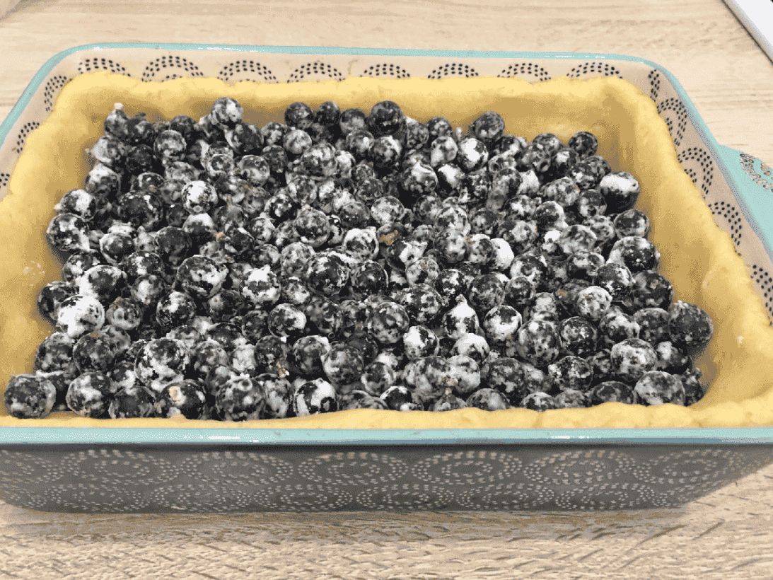 Дістаємо охолоджене тісто у формі та у поглиблення висипаємо підготовлені ягоди.