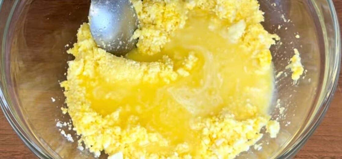 Додаємо розтоплене вершкове масло, перемішуємо.
