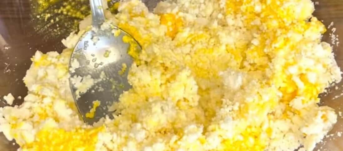 У чашу виливаємо тепле молоко, всипаємо цукор, дріжджі, перемішуємо, накриваємо і прибираємо в сторону. В іншу чашу викладаємо сир, додаємо яйце, цукор і все ретельно перемішуємо.