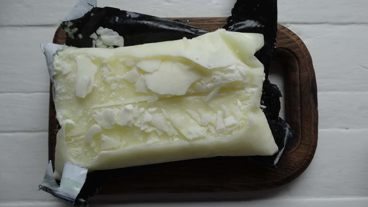 Як тільки кефір перетворився в льодову брилу, дістаємо його з морозилки і звільняємо від упаковки.