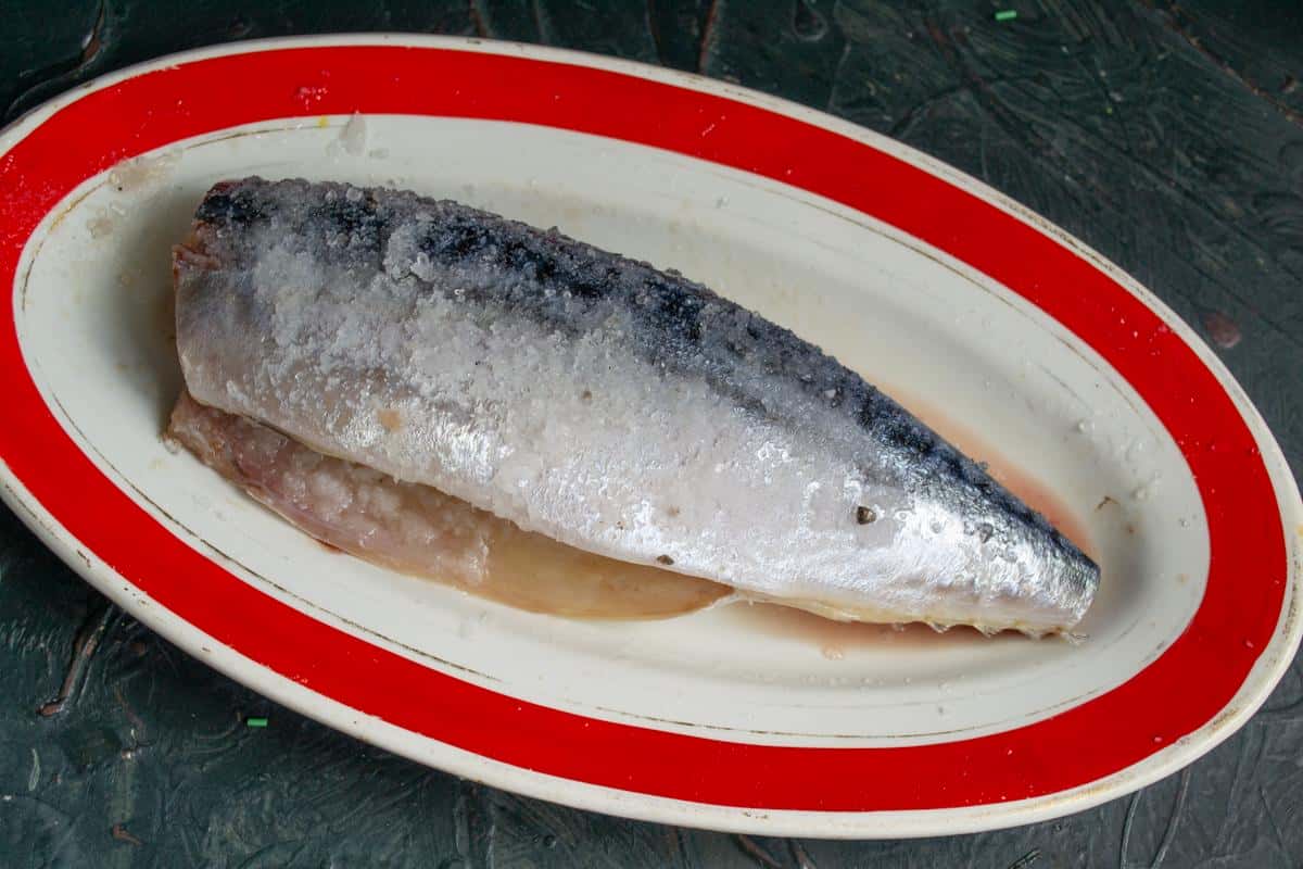 Скумбрію потрібно вибрати правильно, якщо свіжа, то тут без питань – зябра червоні, очі ясні. Якщо на боках іржаві плями, то, ймовірно, рибу кілька разів розморожували і для засолювання вона не годиться. Загальна рекомендація: без пошкоджень, плям, товстенька, важка.