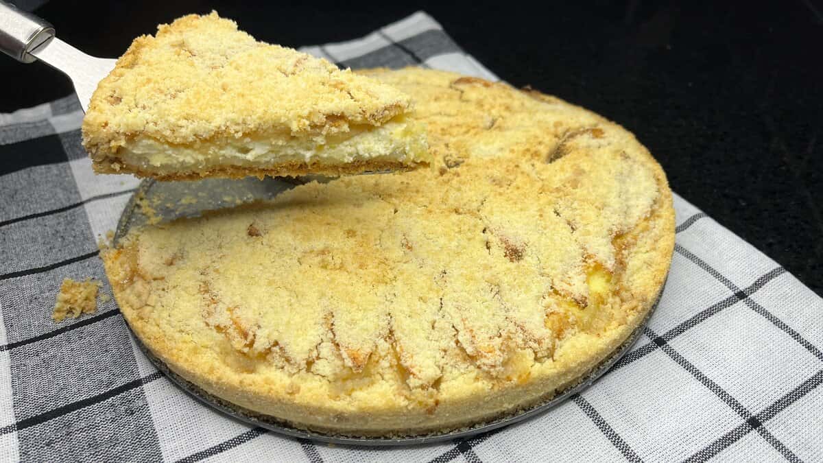 Зверху закриваємо пиріг меншою частиною, що залишилася розсипчастого тіста.