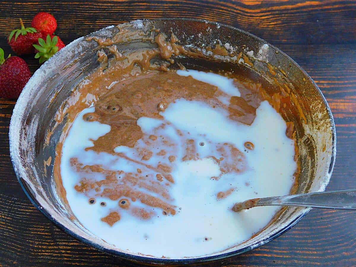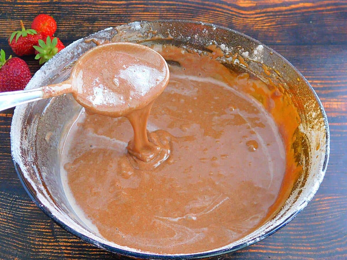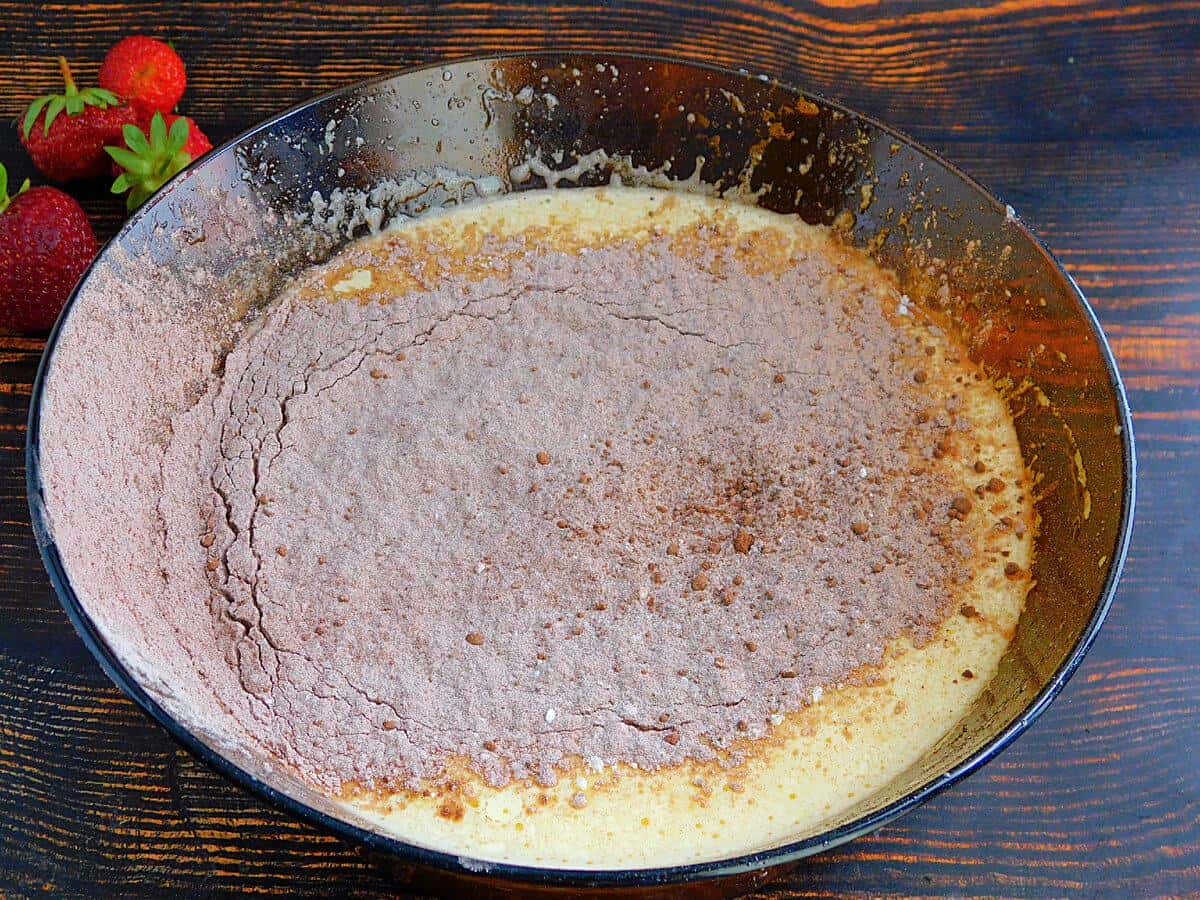 Збити міксером до пишної піни і збільшення в обсязі. Просіяти борошно, какао і розпушувач.