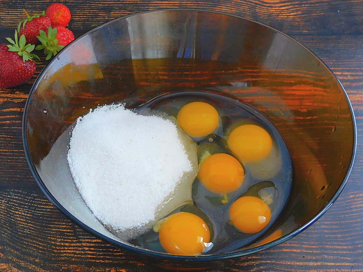 Підготувати все необхідне. Яйця дістати з холодильника заздалегідь, щоб вони встигли прогрітися до кімнатної температури.
