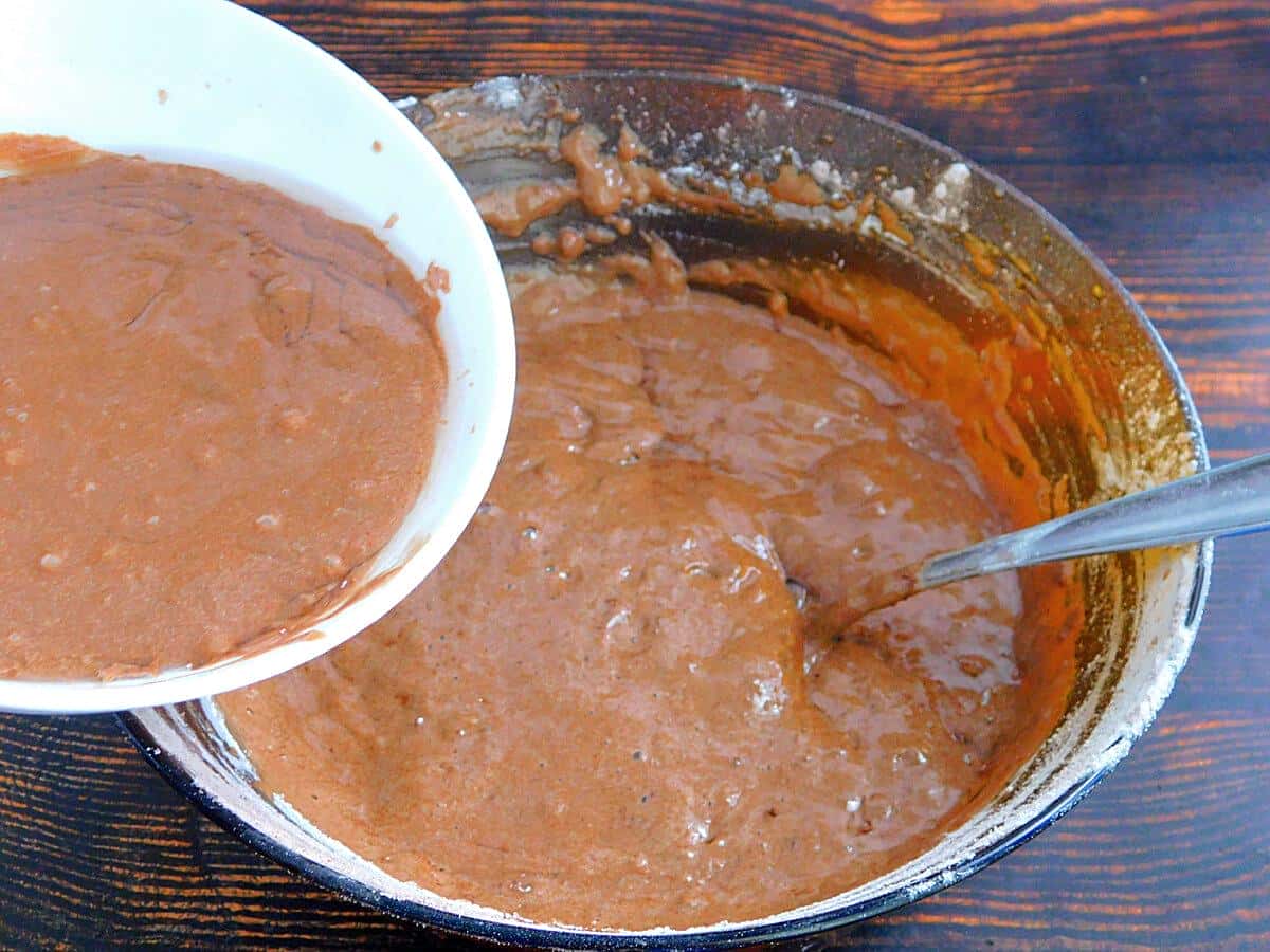 Пару столових ложок відкласти в мисочку і з’єднати з олією. Повернути в тісто.