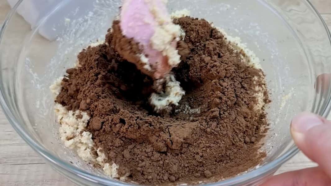До цієї тістоподібної маси додати порошок какао і дуже добре перемішати