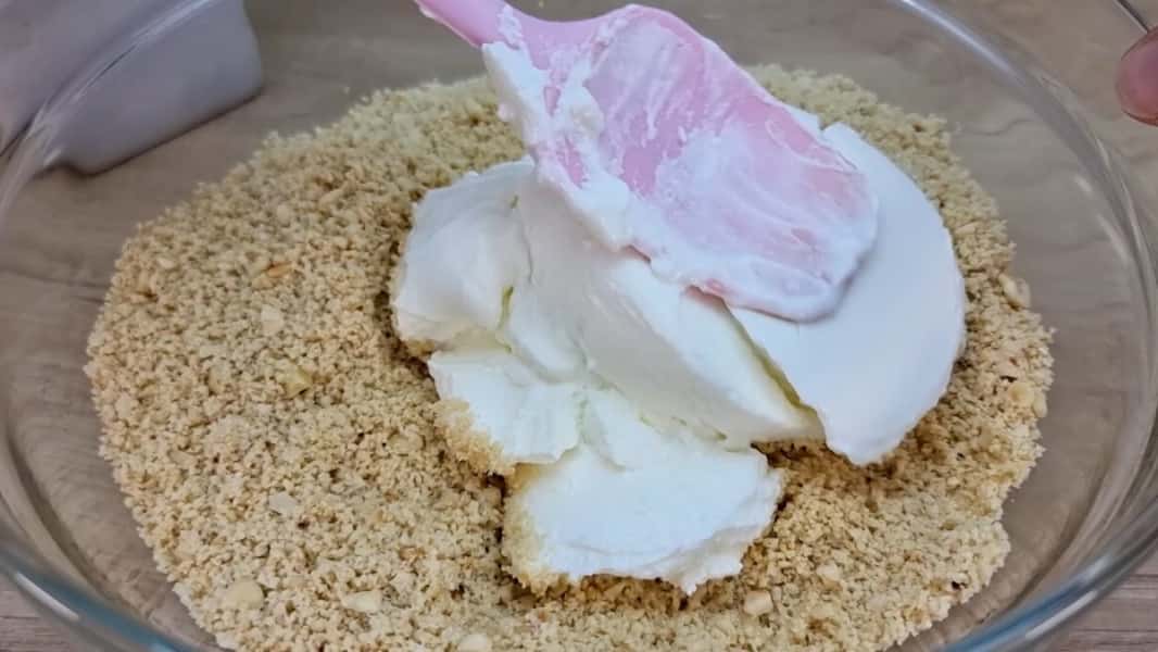 У посуд з арахісом та фундуком додати густий йогурт, ванільний цукор та мед (або кленовий сироп). Після додавання кожного інгредієнта ретельно перемішувати. Повинна вийти однорідна маса