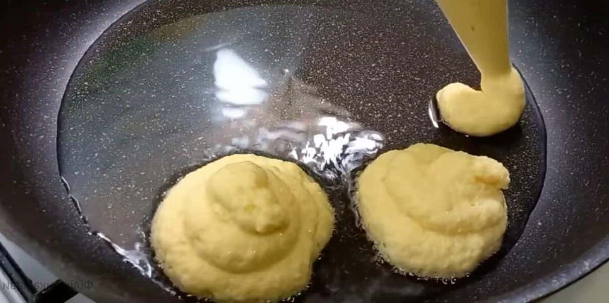 Викладаємо в кондитерський мішечок і видавлюємо отриману масу на сковорідку з розігрітою олією.