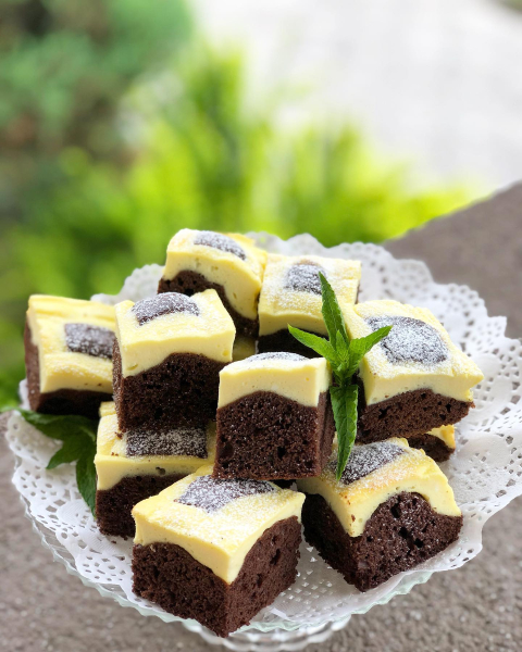 Остудити на решітці. Перед подачею можна посипати цукровою пудрою та розрізати по білих лініях.