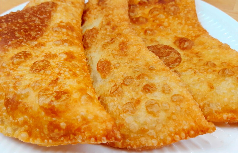 Чебуреки будуть на заварному тісті, воно зручне у роботі та смачне у готовому вигляді. Соняшникова олія в тісті робить чебуреки більш пухирчастими.
