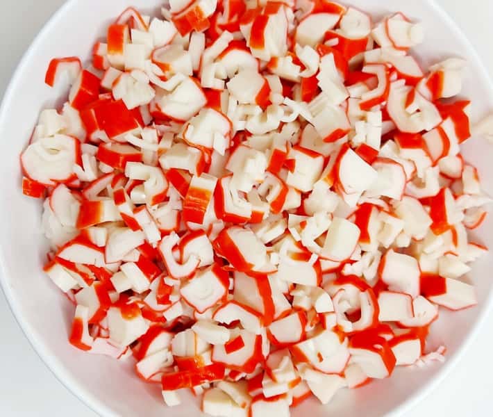 4. Зверху посипати крабові палички.