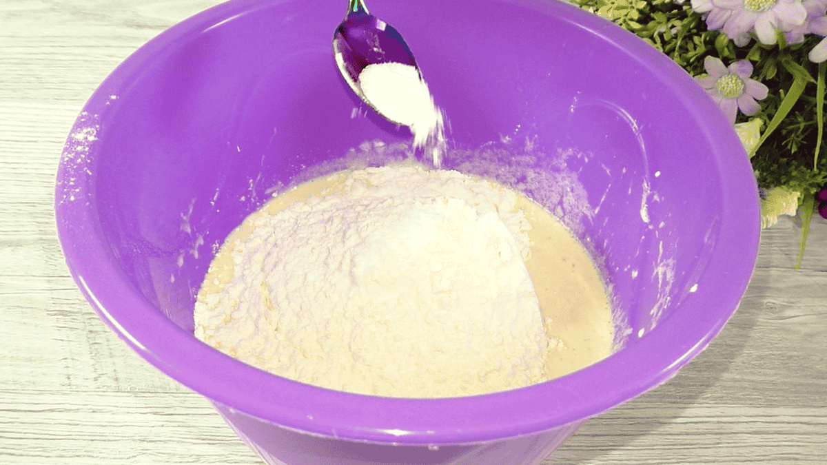 Додати борошно і соду. Я борошна додала 5 ст. л. перемішала.