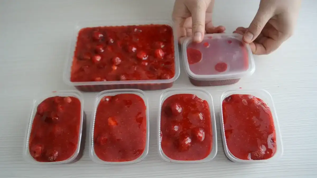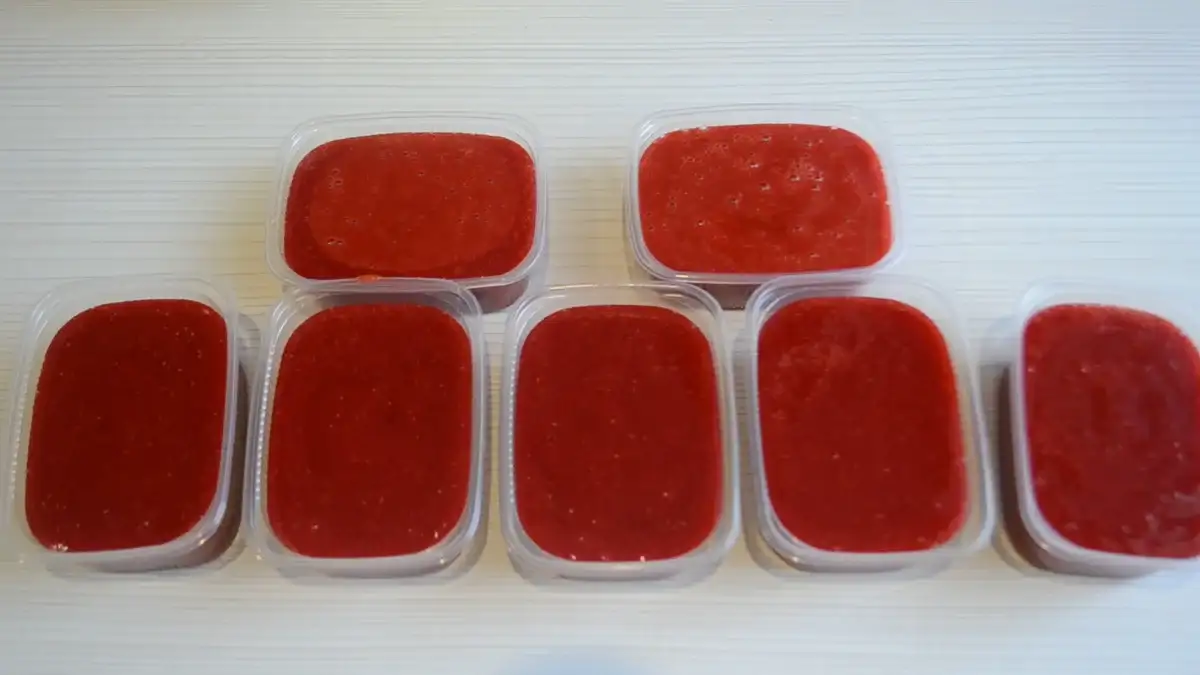 Для заморожування полуничного пюре я використовую невеликі пластикові контейнери та силіконові форми.