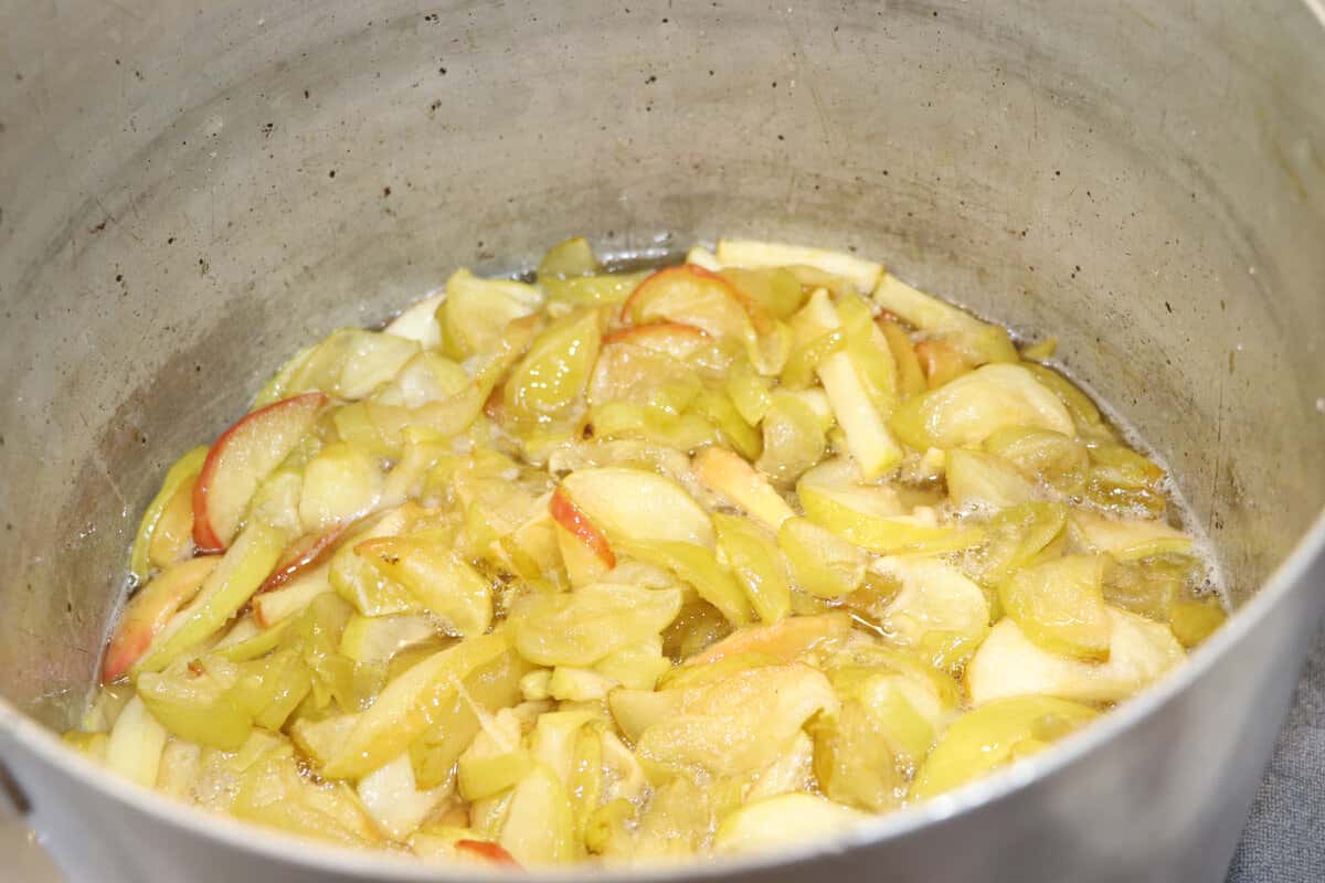 1. Яблука я промиваю, нарізаю на невеликі шматки і відправляю у глибоку каструлю.