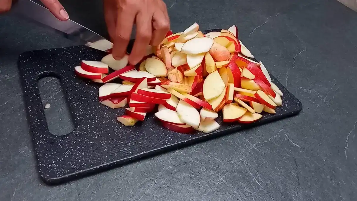 Яблука промиваю та нарізаю на невеликі шматочки.