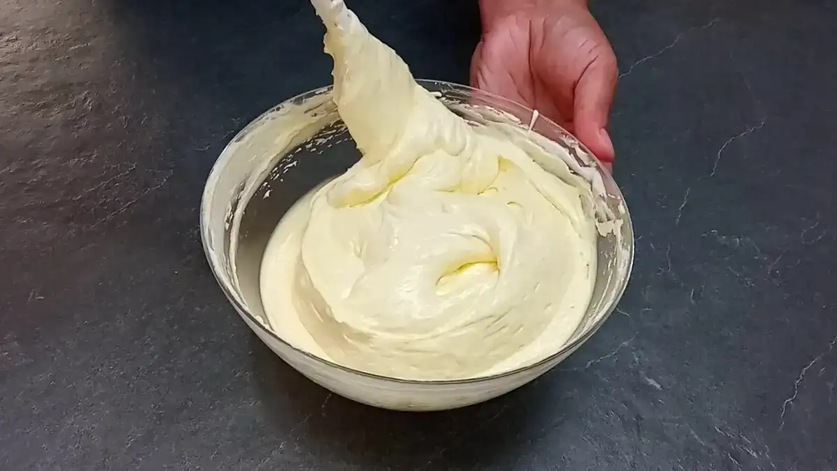 Збиті білки поступово частинами додаю до сиру і акуратно перемішую.