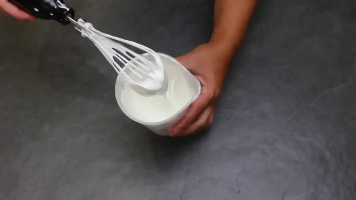 Тим часом поки яблука карамелізуються, збиваю білки з цукром до стійких піків.
