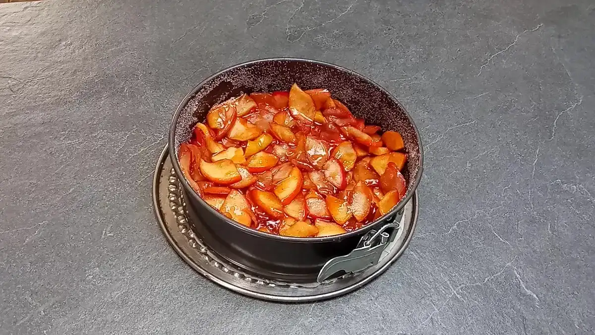 У форму для випічки, змащену вершковим маслом, викладаю спершу яблука.