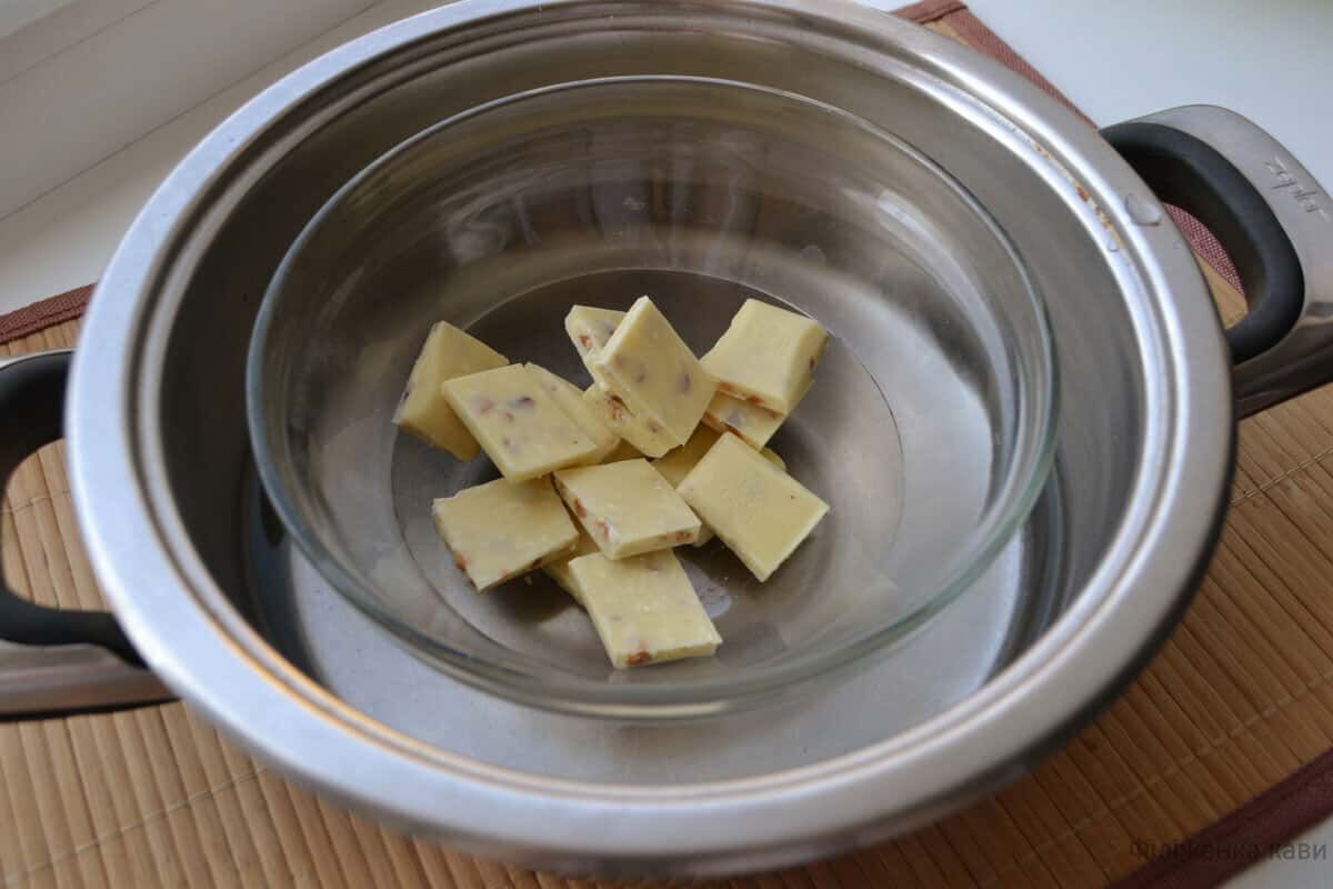 В першу чергу розтоплюю на водяній бані білий шоколад.
