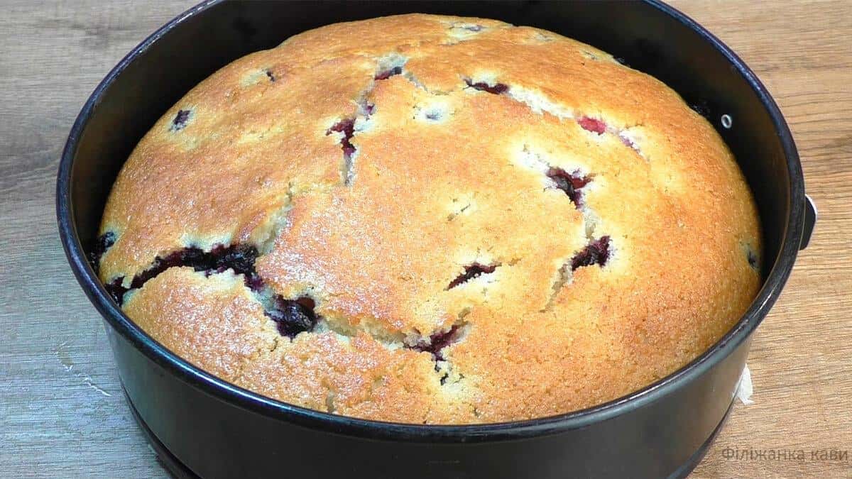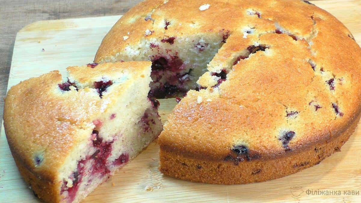 Даємо йому трохи охолонути і витягуємо з форми. Цей пиріг з ягодами виходить повітряний, м’який і ніжний. Дуже смачний, ідеальний варіант до чаю.
