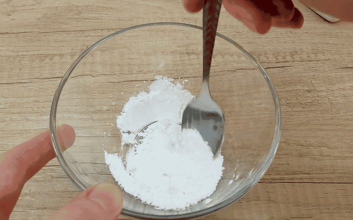 Змішайте 1 столову ложку кукурудзяного крохмалю+1 столова ложка цукрової пудри