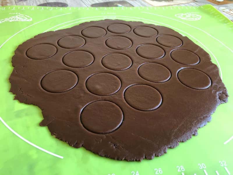 Готове тісто розкачуємо в пласт близько 3 мм і вирізаємо формочкою (у мене 5 см) печиво.