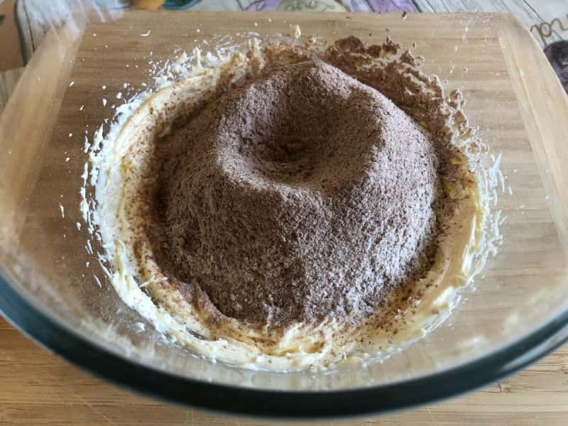 Борошно змішуємо з какао і розпушувачем, просіюємо до решти інгредієнтів і замішуємо тісто.