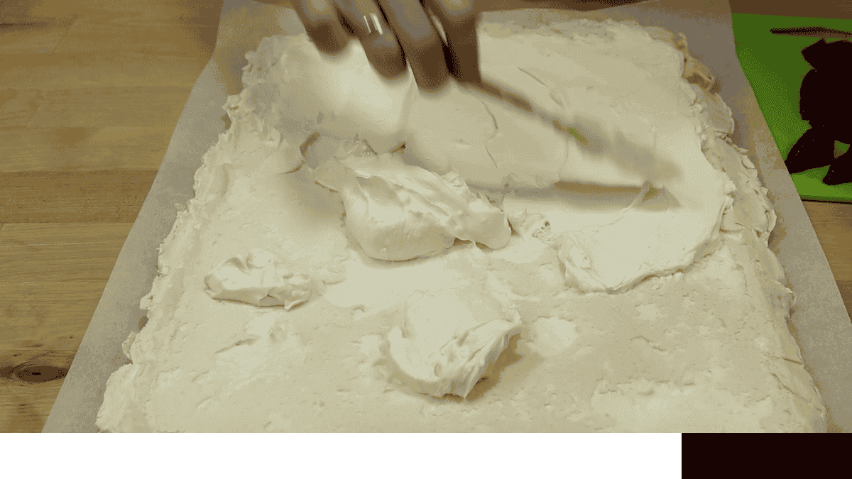 Викладаю масу на деко і розрівнюю. До країв не доходжу.