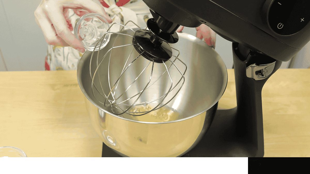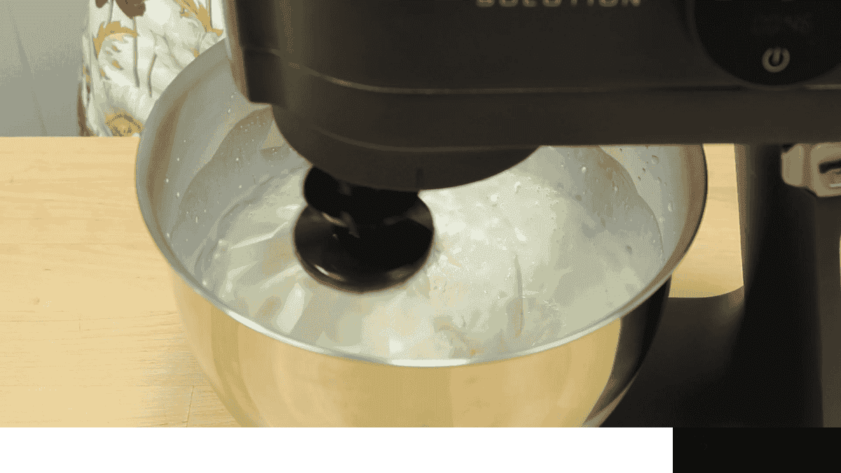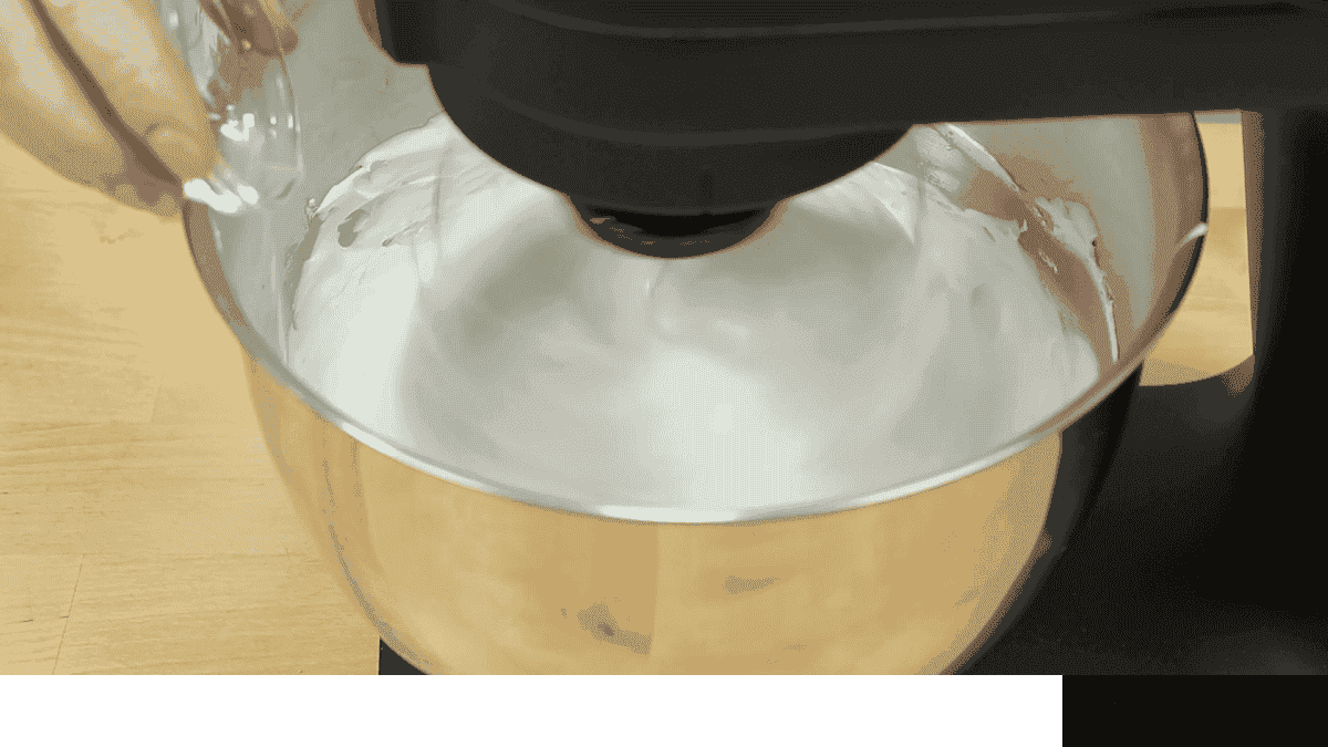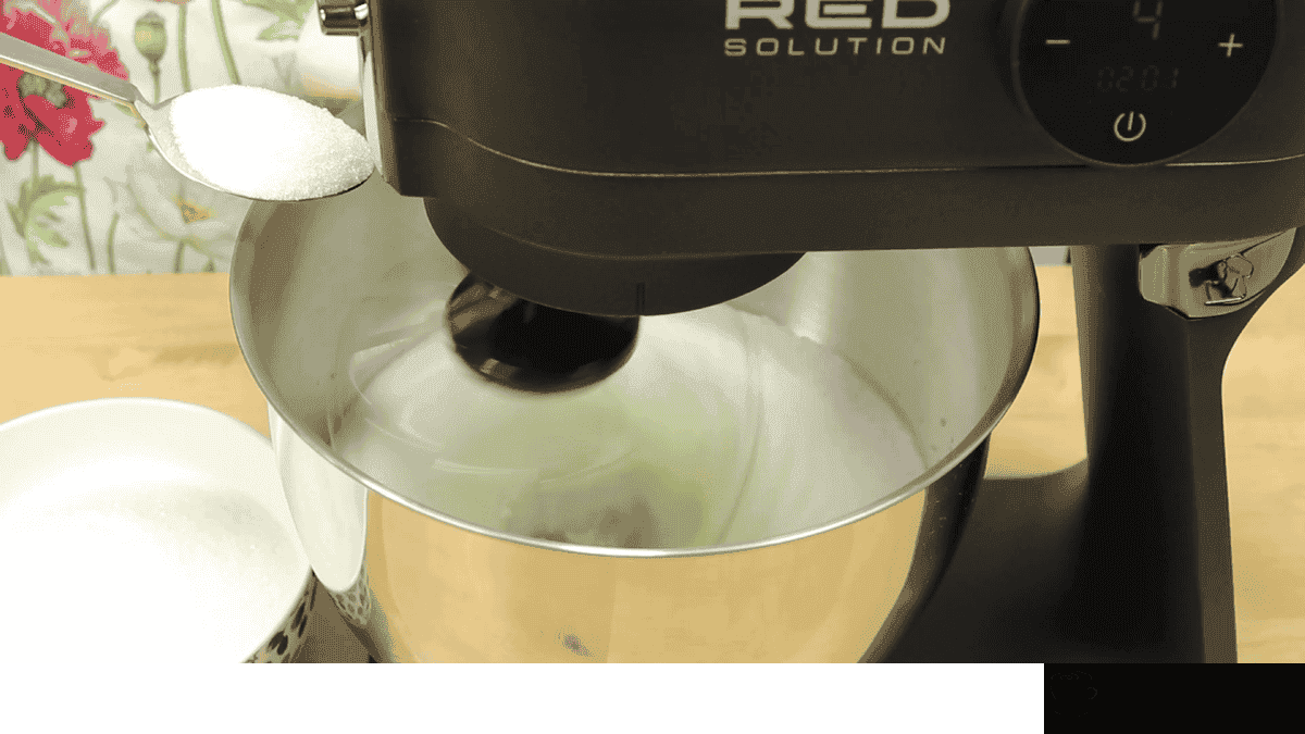 Тепер по 1 ст. л. всипаю цукор і продовжую збивати поки весь цукор не закінчиться. Поступово збільшую швидкість міксера. Я збиваю на 4 швидкості з 7. Залежно від міксера це може бути і третя швидкість. Краще збивати повільніше але довше!