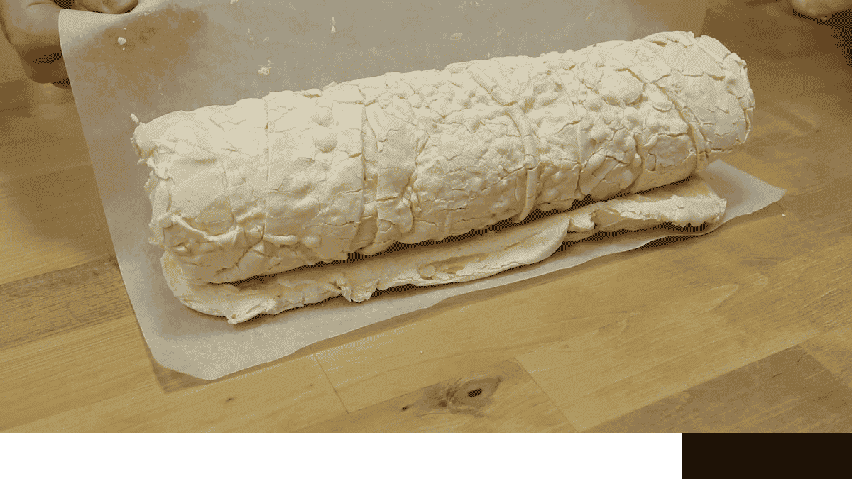 За допомогою нижнього листа пергаменту звертаю в рулет.
