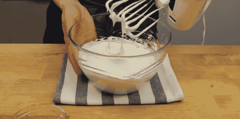 Бісквіт: Білки потрібно відокремити від жовтків. Білки збиваю в піну.