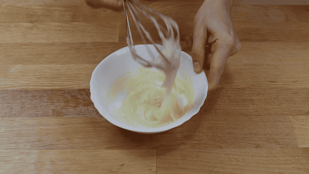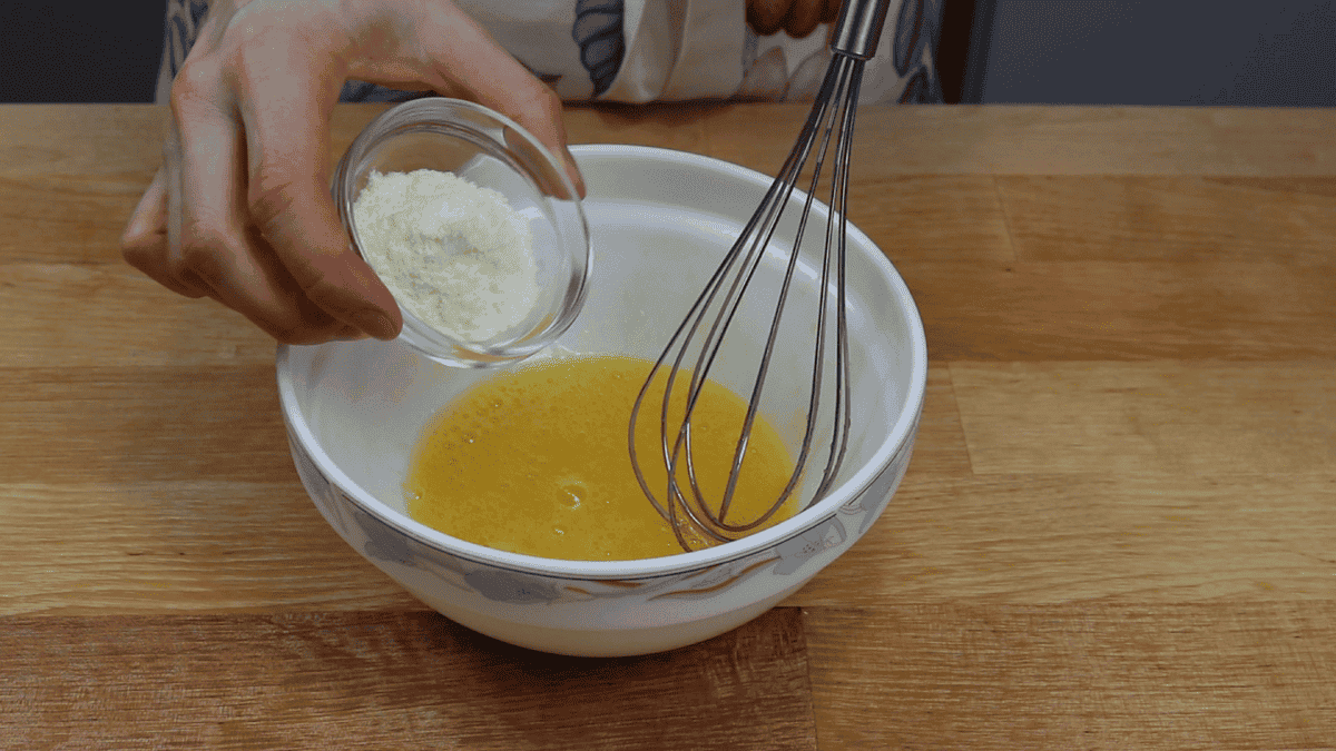 Тепер змішую яйце, сіль, що залишився цукор і сухе молоко. Збиваю вінчиком.
