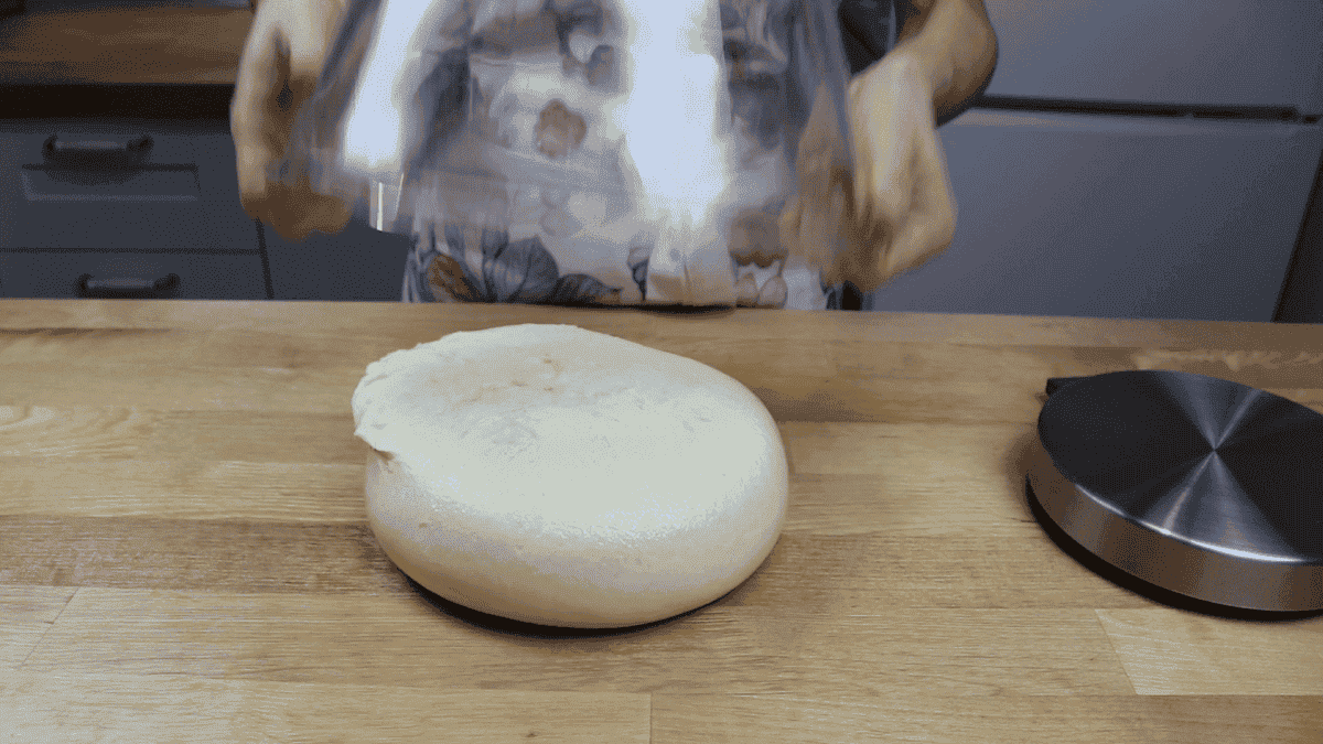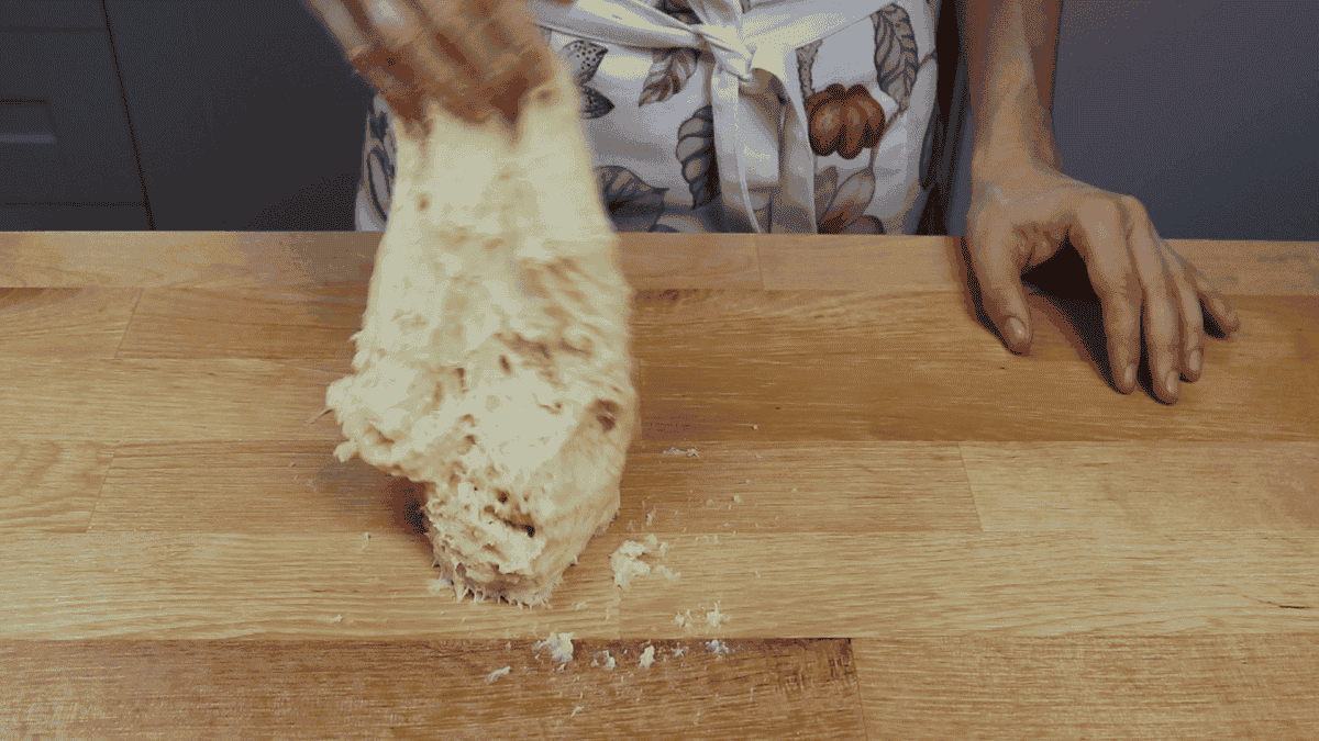 Вимішую на столі поки тісто не стане гладким, 10-15 хвилин.