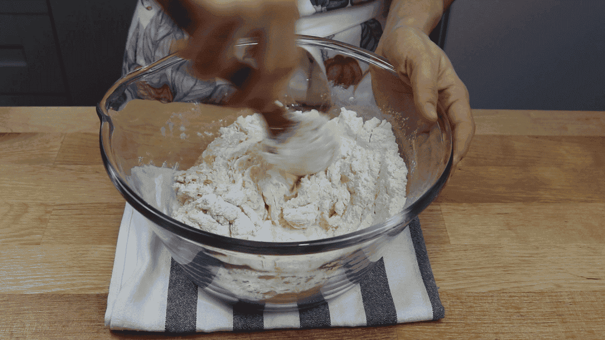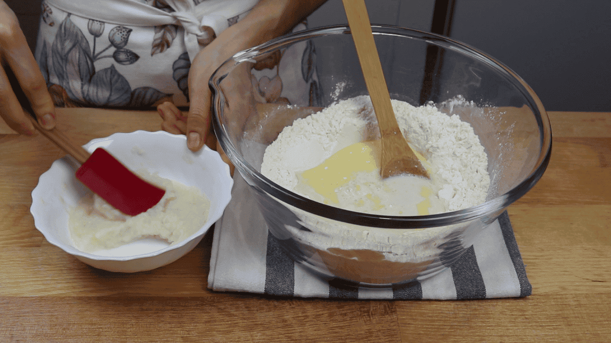Замішую тісто. Воно збереться в грудку але буде в’язким і липким.