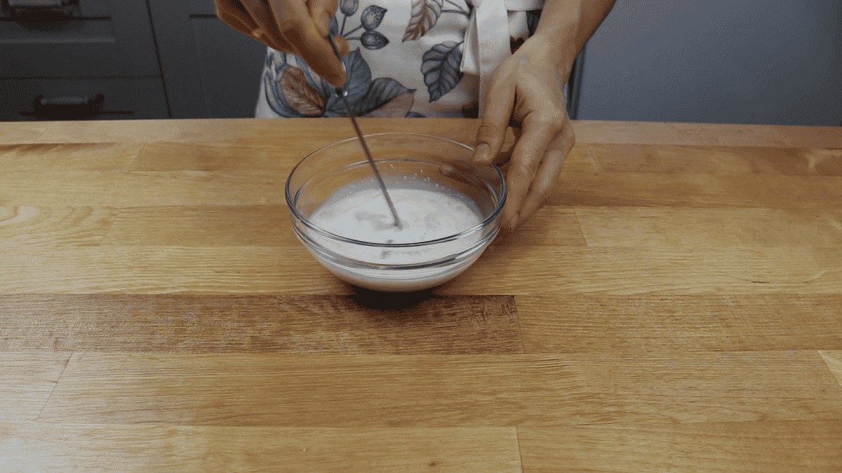 Вливаю тепле молоко, перемішую і залишаю на 5 -10 хвилин.